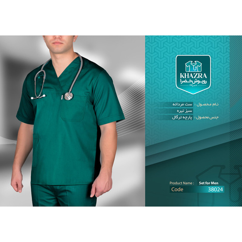 ست لباس اتاق عمل سبز تیره مردانه خضرا مدل اسکراب ( کد 38024 ) در شرکت تبیان طب دیبا رازی طراحی و تولید شده است . پارچه این محصول ترگال می باشد . از ویژگی های این محصول عدم ایجاد حساسیت و عدم تعریق و وزن کم میباشد.پارچه ترگال کمی ضخیم تر از پارچه تترون میباشد ، که باعث افزایش عمر محصول در برابر ست های تترون میگردد .برای انتخاب سایز مناسب ، یک ست قدیمی را از پشت اندازه گیری کنید و با جدول راهنمای سایز که در تصاویر قرار داده شده مقایسه کنید .دقت کنید حتما براساس جدول ، سایز خودتان را انتخاب کنید و سایز روپوش ، بامدل یا برند دیگر را معیار انتخاب سایز ، قرار ندهید . محصولی که دریافت میکنید دارای مارک های دوخته شده خضرا (KHAZRA) می باشد و نوع پارچه و کد محصول روی هر محصول درج شده است .