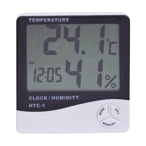 دماسنج رطوبت سنج HTC-1 برای اندازه گیری دما و رطوبت محیط بکار می رود. این دماسنج دیجیتالی محیطی بصورت رومیزی و یا دیواری قابل استفاده می باشد. این رطوبت سنج دیجیتال محیط دارای تاریخ و ساعت و حافظه ماکزیمم و مینیمم می باشد.