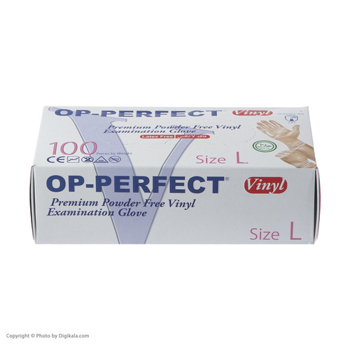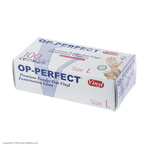 دستکش وینیل او پی پرفکت مدل AM-L سایز لارج بسته 100 عددی