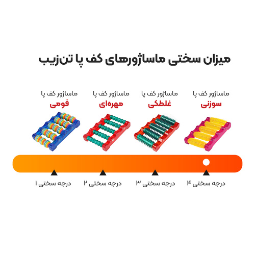 سایر توضیحاتدرجه سختی ماساژ از بین بقیه ماساژورهای کف پا تن زیب 4از 4 می باشد و ماساژ عمقی تری میدهد