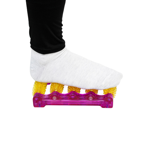 ماساژ دادن پا خستگی و کلافگی روزمره را از تن بیرون کرده و باعث کاهش استرس میشود. این ماساژور کف پا تنزیب مدل سوزنی یک راه حل فوقالعاده برای ماساژ کف پا است. این ماساژور با 5 غلطک سوزنی روی زمین قرار میگیرد و پا روی آن قرار میگیرد. این ماساژور از جنس پلاستیک فشرده برای هر سایز پایی مناسب است. این سوزنهای ریز تاثیر عمیق و موثری گذاشته و حس یک ماساژ لذت بخش را القا میکند. طبق اصول رفلکسولوژی ماساژ نقاط مختلف در کف پا تاثیر متعددی بر غدد و ارگانهای مهم بدن ایجاد کرده و موجی مثبت در بدن جاری میکند. استفاده از 5 تا 10 دقیقه از این وسیله در روز علاوه بر ریلکسیشن و کاهش استرس، ورم پا در اثر کار روزانه را کاهش داده و فشار خون را تنظیم میکند. همچنین دردهای موضعی و مزمن مانند سردردهای میگرنی نیز با این ماساژ التیام مییابند. ماهیت ماساژدهی و درمانی، این محصول هدیهای ارزشمند برای عزیزان شما بویژه سالخوردگان است.