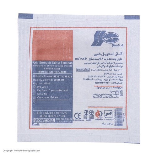 سایر توضیحات- گاز طبی استریل - 8 لایه - 100% پنبه