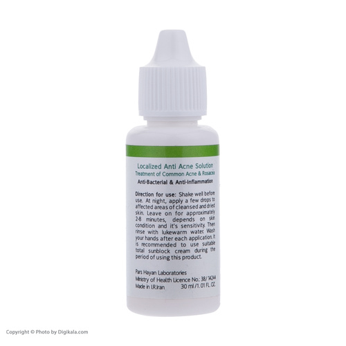 راهنمای استفادهقبل از مصرف بطری را به خوبی تکان دهید. شب ها، چند قطره از فرآورده را به طور مستقیم بر روی پوست تمیز و خشک موضع مورد نظر و نواحی که دارای آکنه می باشند، استفاده نمایید. دست های خود را پس از هر بار استفاده از فرآورده بشویید. در طی مصرف این قرآورده روزها از کرم ضدآفتاب با فاکتور حفاظتی مناسب استفاده فرمایید