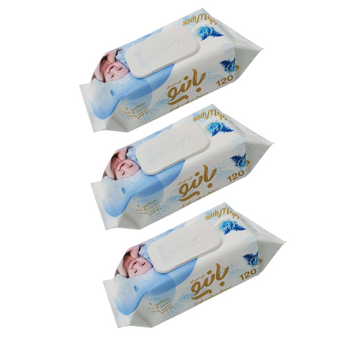 دستمال مرطوب کودک بانیو مدل 120 مجموعه 3 عددی